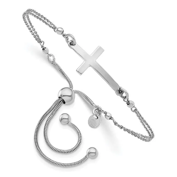 (405) 360-2515Leslie's Sterling Silver Polished Sideway Cross Adj. Bracelet