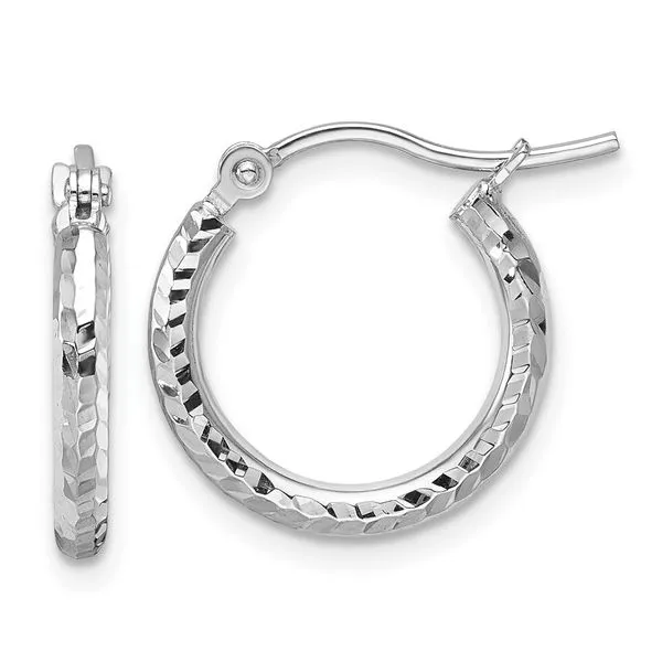 Leslie's 10k White Gold Diamond-cut 2mm Round Tube Hoop Earrings Image 4 Mitchell's Jewelry Norman, OK