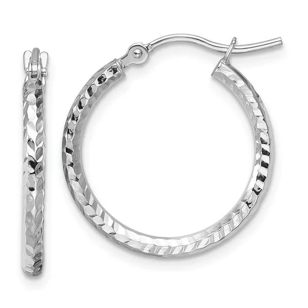 (405) 360-2515Leslie's 10k White Gold Diamond-cut 2mm Round Tube Hoop Earrings