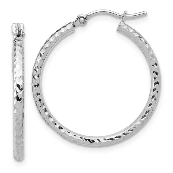 (405) 360-2515Leslie's 10k White Gold Diamond-cut 2mm Round Tube Hoop Earrings