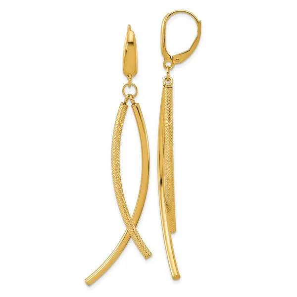 (405) 360-2515Leslie's 14k Polished and Textured Tube Dangle Leverback Earrings