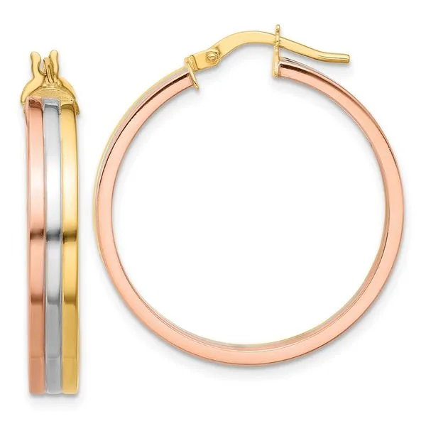 (405) 360-2515Leslie's 14K Tri-color Polished Three-row Left Right Hoop Earrings