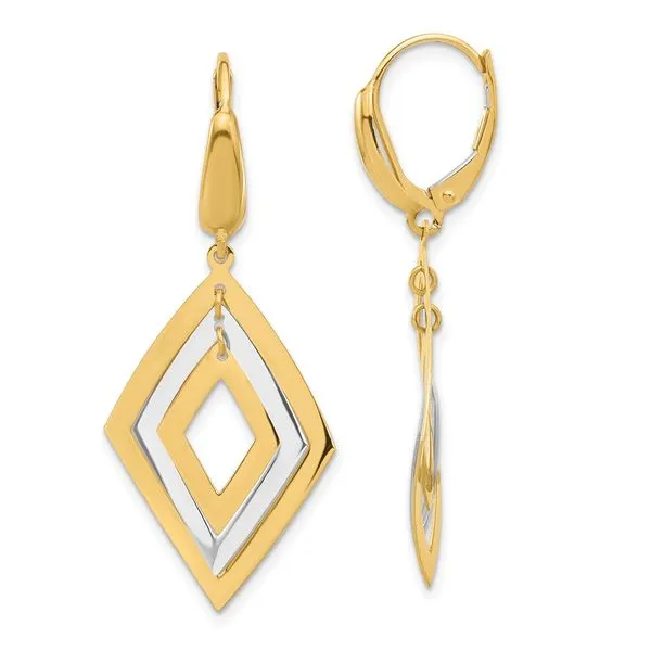 (405) 360-2515Leslie's 14K Two-tone Polished Diamond Shaped Dangle Leverback Earrings