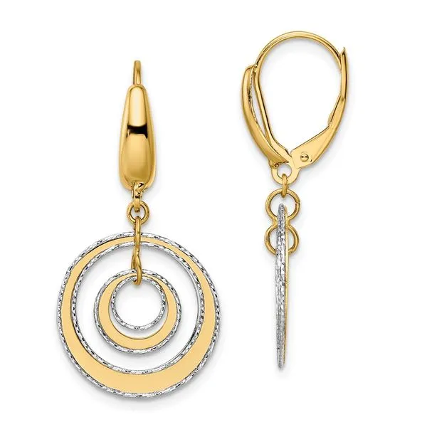 (405) 360-2515Leslie's 14K Two-tone Polished Textured Leverback Dangle Earrings
