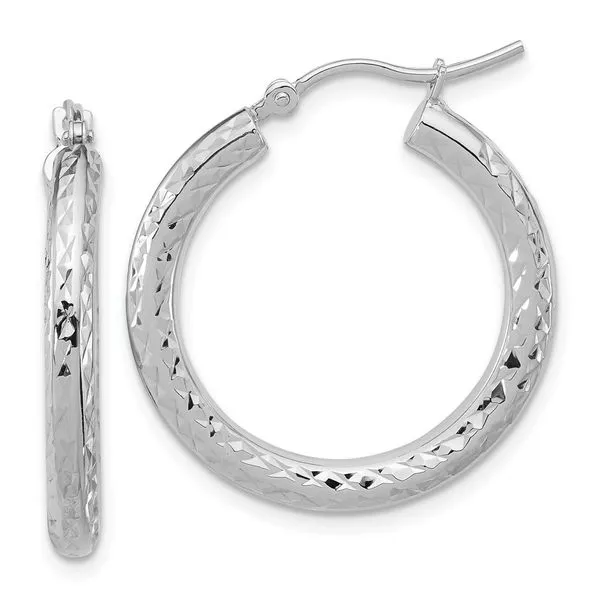 Leslie's 14k White Gold Diamond-cut 3mm Round Hoop Earrings Image 3 Mitchell's Jewelry Norman, OK