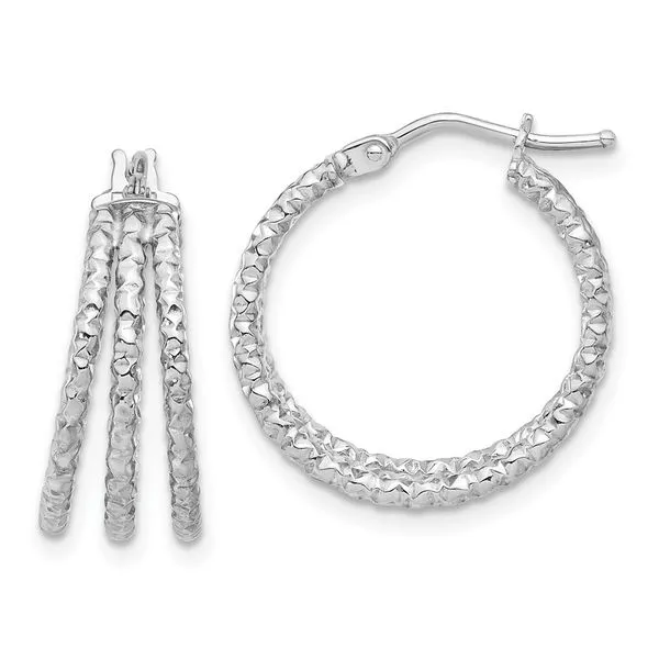(405) 360-2515Leslie's 14K w/Wht RH-plat Polish/Texture Three Row Hoop Earrings