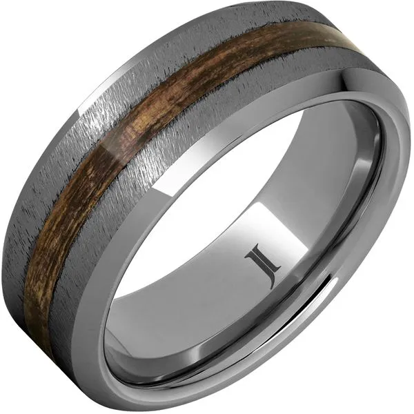 (405) 360-2515Barrel Aged™ Rugged Tungsten™ Ring with Bourbon Wood Inlay and Grain Finish