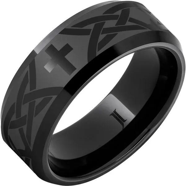 (405) 360-2515Black Diamond Ceramic™ Christian Cross and Knot Beveled Ring