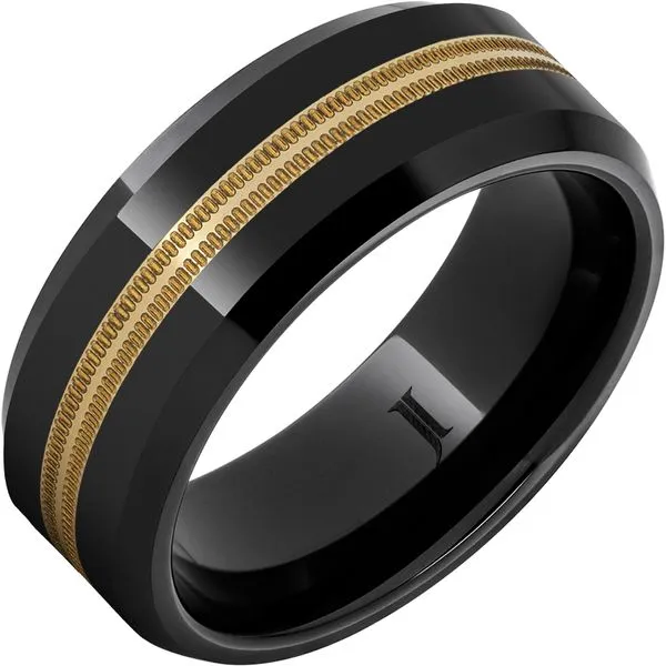 (405) 360-2515Black Diamond Ceramic™ Ring with 14K Yellow Milgrain Inlay