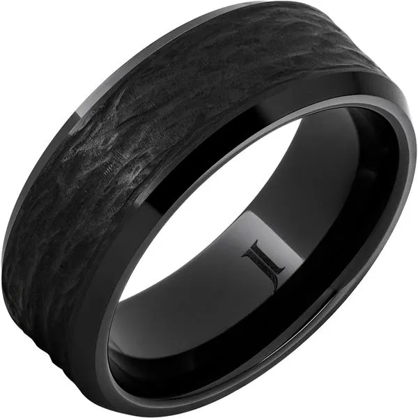 (405) 360-2515Black Diamond Ceramic™ Ring with Hand Carved Bark Engraving