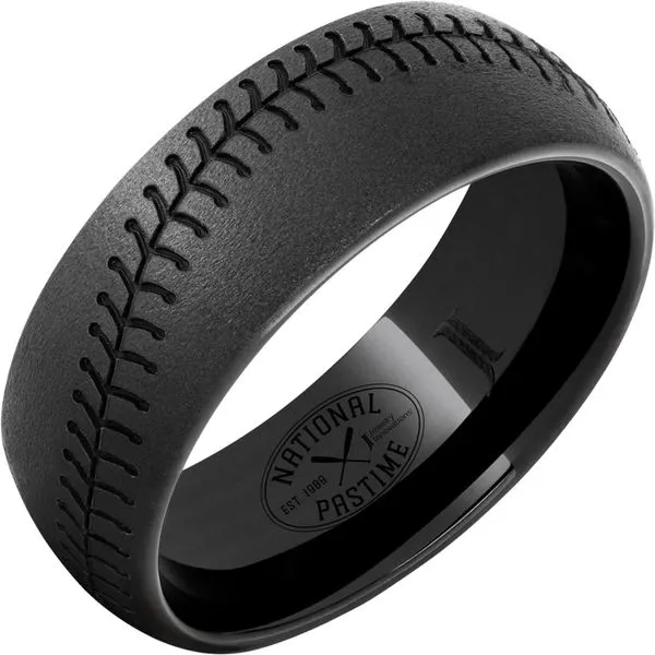 (405) 360-2515National Pastime Collection™ Black Diamond Ceramic™ Domed Baseball Stitch Ring with Stone Finish