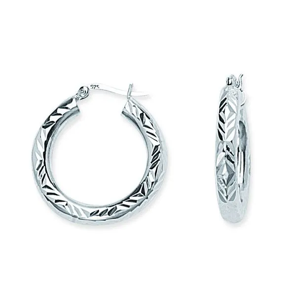(405) 360-2515Etched Sterling Silver Hoop Earrings by Midas