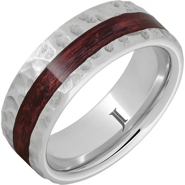 (405) 360-2515Barrel Aged™ Serinium® Ring with Cabernet Wood Inlay and Moon Crater Carving