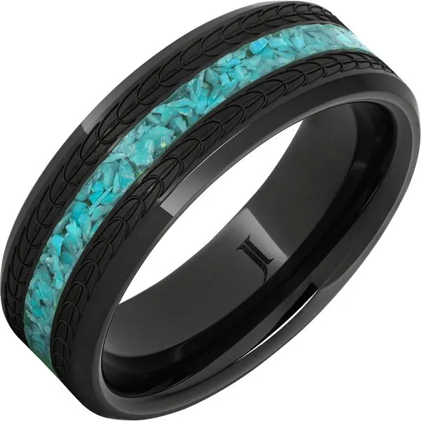 (405) 360-2515Black Diamond Ceramic ™Turquoise Ring with Eagle Feather Engraving