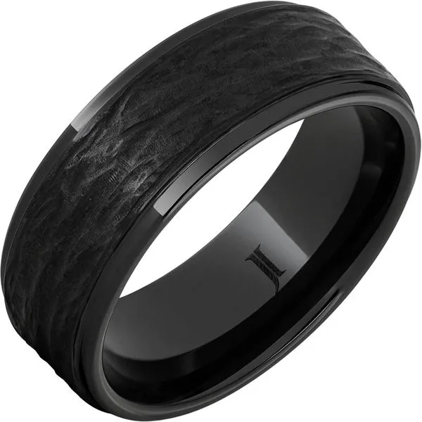 (405) 360-2515Black Diamond Ceramic™ Ring with Hand Carved Bark Engraving