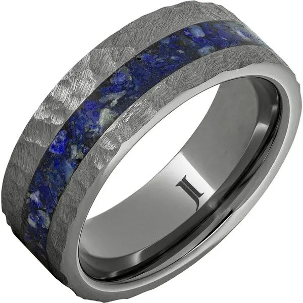 (405) 360-2515Rugged Tungsten™ Ring with Lapis Lazuli Inlay and Moon Crater Finish