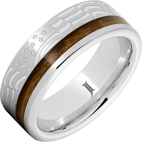 Whiskey Rebellion - Serinium® Ring with Bourbon Barrel Inlay and American Flag Engraving Mitchell's Jewelry Norman, OK
